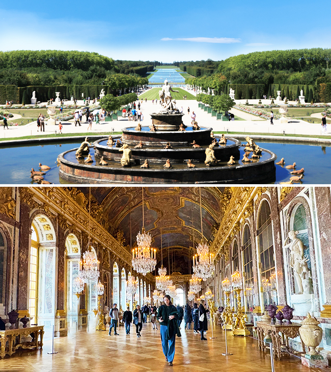 | 凡爾賽宮 | 世上最金碧輝煌的宮殿之一 由法王路易十四所建 佔地達800多公頃 以古典主義風格為主 整體左右對稱 ------------------------------------------------------ 鏡廳
